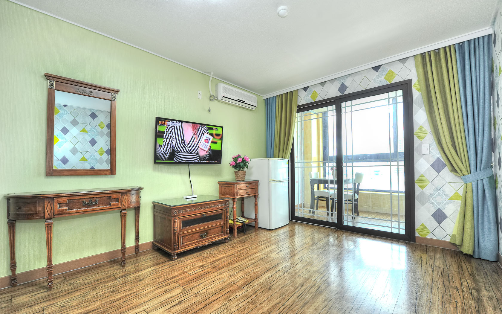 기본시설 : 침대,TV, 에어컨, 협탁, 화장대, 테이블셋트, 정수기, 헤어드라이기, 인터넷 전용선,테이블셋트