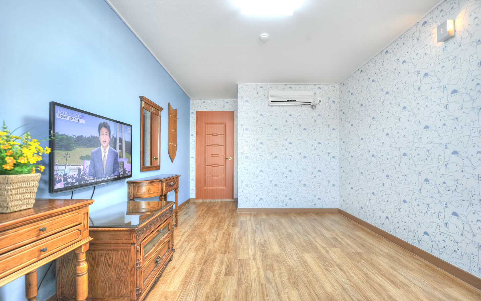 기본시설 : 침구류,TV, 에어컨, 협탁, 화장대, 테이블셋트, 정수기, 헤어드라이기, 인터넷 전용선